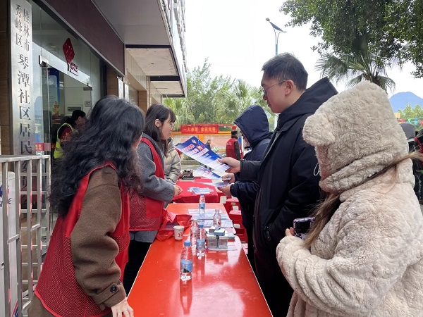 鼎和晟供应链党总支在琴潭社区设置反诈宣传、免费洗车等便民服务专区,志愿者们为居民普及防骗知识、义务清洗电动车,走访慰问社区群众送上元宵与祝福。