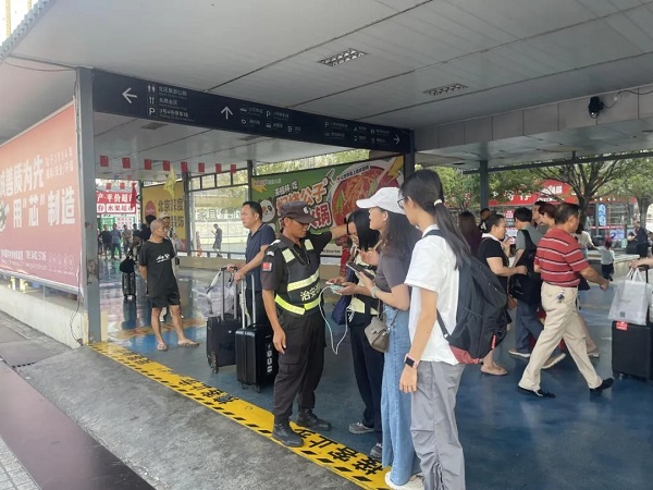 作为桂林重要交通枢纽,桂林北站东广场双节期间迎来出行高峰,累计接待车辆10.08万台次,进出站旅客约40万人次。鼎捷资产公司物业团队以“疏堵保畅、安全兜底”为目标,创新“多级疏导、动态管控”机制,增设3个临时交通引导岗,优化车辆流线标识,推出“30分钟免费停车”便民政策,使车辆周转效率提升40%,高峰期平均通行时间缩短至5分钟以内。同步联动公交、出租车公司建立“即到即走”接驳机制,确保旅客出站“无缝换乘”。同时,实行“三班倒”全时段巡检制度,在进出站口、连廊等重点区域增派安保人员,提供问询指引、行李协助等服务。保安秦志湖单人劝阻“野马拉客”行为12起,协助20余名游客联系正规车辆,被旅客称为“站前安全哨”。